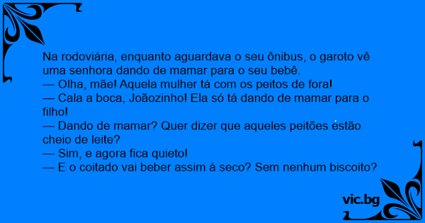 — Cala a boca, Joãozinho! Ela só tá dando de mamar para o filho!