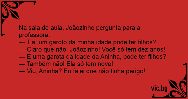 — Claro que não, Joãozinho! Você só tem dez anos!