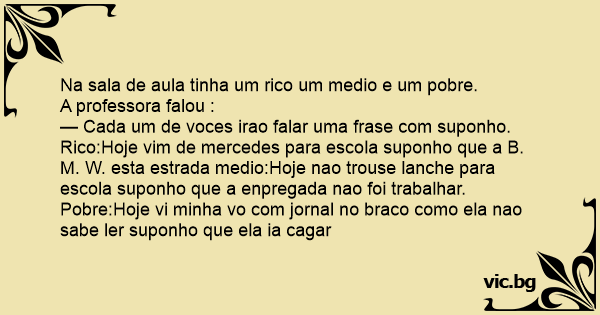 Na sala de aula tinha um rico um medio e um pobre.