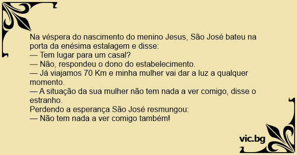 Na véspera do nascimento do menino Jesus, São José bateu na porta da enésima estalagem e disse: