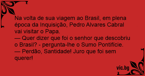 — Quer dizer que foi o senhor que descobriu o Brasil? - pergunta-lhe o Sumo Pontifície.
