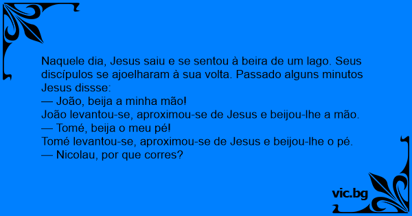 Naquele dia, Jesus saiu e se sentou à beira de um lago. Seus discípulos se ajoelharam à sua volta. Passado alguns minutos Jesus dissse: