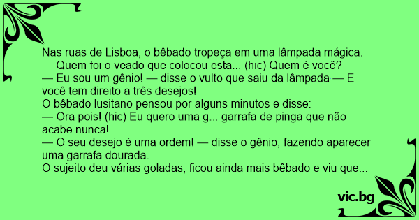 Nas ruas de Lisboa, o bêbado tropeça em uma lâmpada mágica.