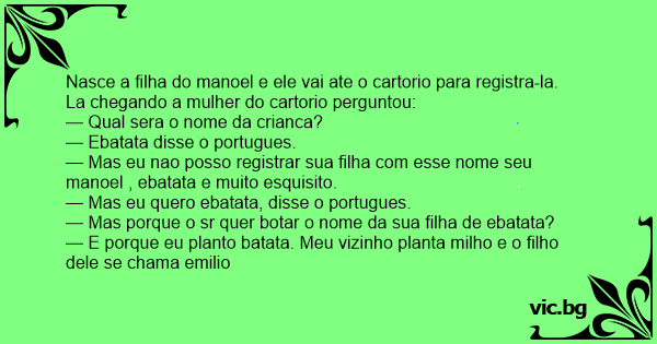 — Mas porque o sr quer botar o nome da sua filha de ebatata?