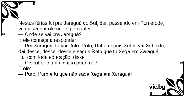 Nestas férias fui pra Jaraguá do Sul, daí, passando em Pomerode, vi um senhor alemão e perguntei: