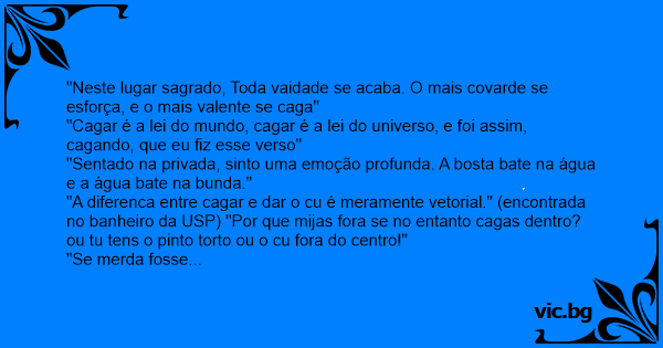 "A diferenca entre саgаr e dar o cu é meramente vetorial." (encontrada no banheiro da USP) "Por que mijas fora se no entanto cagas dentro? ou tu tens o pinto torto ou o cu fora do centro!"