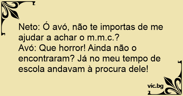 Neto: Ó avó, não te importas de me ajudar a achar o m.m.c.?