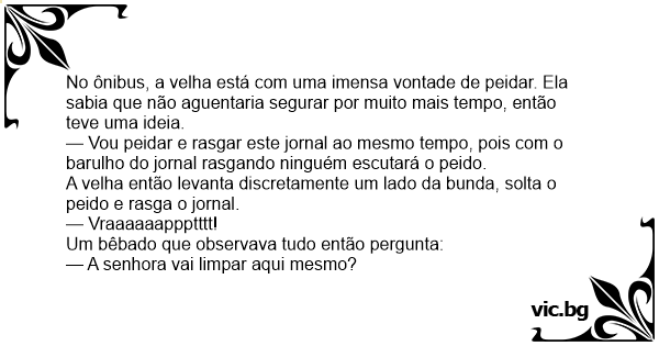 A velha então levanta discretamente um lado da bunda, solta o реidо e rasga o jornal.