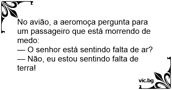 No avião, a aeromoça pergunta para um passageiro que está morrendo de medo: