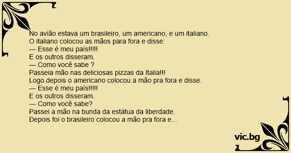 No avião estava um brasileiro, um americano, e um italiano.