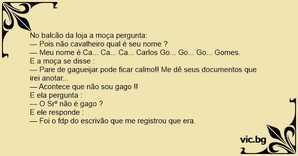 — Meu nome é Ca... Ca... Ca... Carlos Go... Go... Go... Gomes.