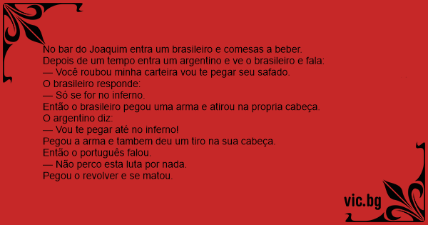 No bar do Joaquim entra um brasileiro e comesas a beber.