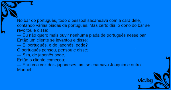 — Eu não quero mais ouvir nenhuma piada de português nesse bar.
