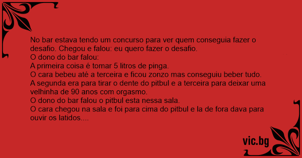 No bar estava tendo um concurso para ver quem conseguia fazer o desafio. Chegou e falou: eu quero fazer o desafio.