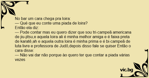 — Não vai dar não porque ào quero ter que contar a piada várias vezes