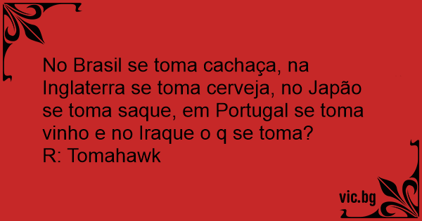 No Brasil se toma cachaça, na Inglaterra se toma cerveja, no Japão se toma saque, em Portugal se toma vinho e no Iraque o q se toma?