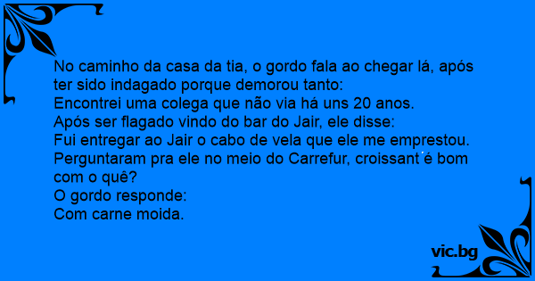 No caminho da casa da tia, o gordo fala ao chegar lá, após ter sido indagado porque demorou tanto: