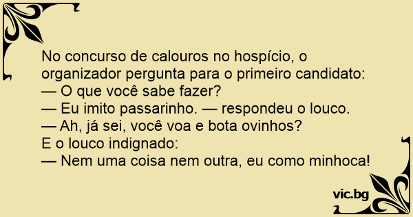 No concurso de calouros no hospício, o organizador pergunta para o primeiro candidato: