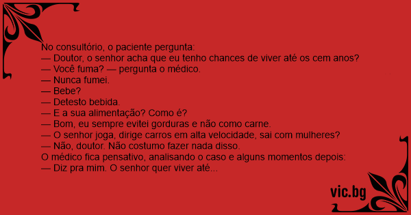 — Doutor, o senhor acha que eu tenho chances de viver até os cem anos?