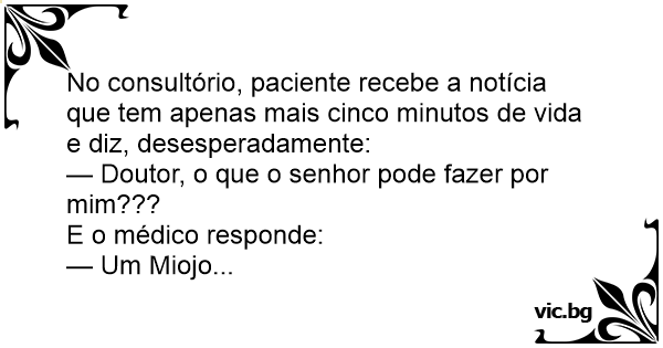 No consultório, paciente recebe a notícia que tem apenas mais cinco minutos de vida e diz, desesperadamente: