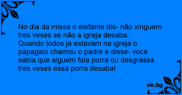 No dia da missa o elefante dis- não xinguem tres veses se não a igreja desaba.