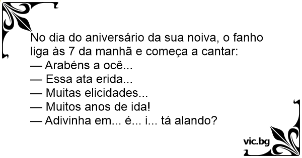 No dia do aniversário da sua noiva, o fanho liga às 7 da manhã e começa a cantar: