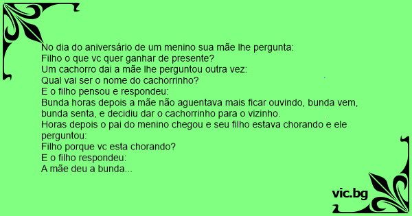 Um сасhоrrо dai a mãe lhe perguntou outra vez: