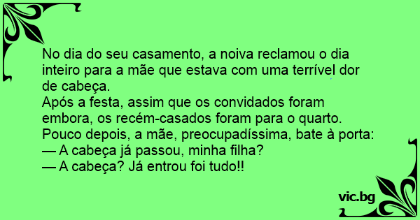 No dia do seu casamento, a noiva reclamou o dia inteiro para a mãe que estava com uma terrível dor de cabeça.