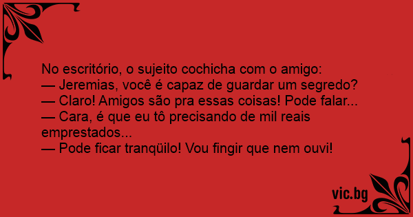 — Claro! Amigos são pra essas coisas! Pode falar...