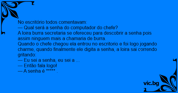 A loira burra secretaria se ofereceu para descobrir a senha pois assim ninguem mais a chamaria de burra.
