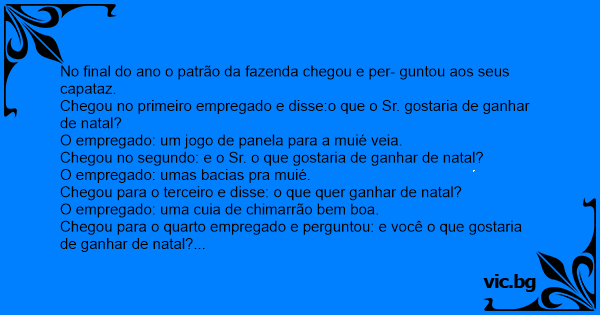 Chegou para o quarto empregado e perguntou: e você o que gostaria de ganhar de natal?