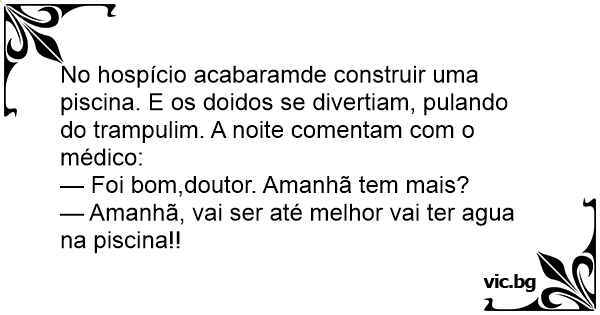 No hospício acabaramde construir uma piscina. E os doidos se divertiam, pulando do trampulim. A noite comentam com o médico: