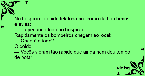 No hospício, o doido telefona pro corpo de bombeiros e avisa:
