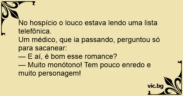 No hospício o louco estava lendo uma lista telefônica.