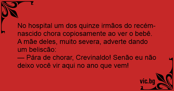 — Pára de chorar, Crevinaldo! Senão eu não deixo você vir aqui no ano que vem!