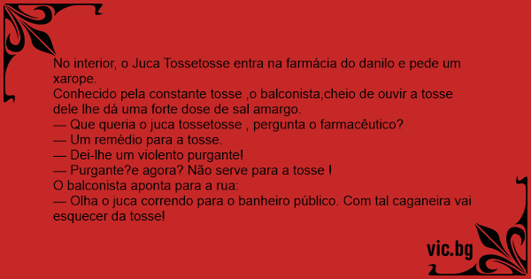 — Que queria o juca tossetosse , pergunta o farmacêutico?