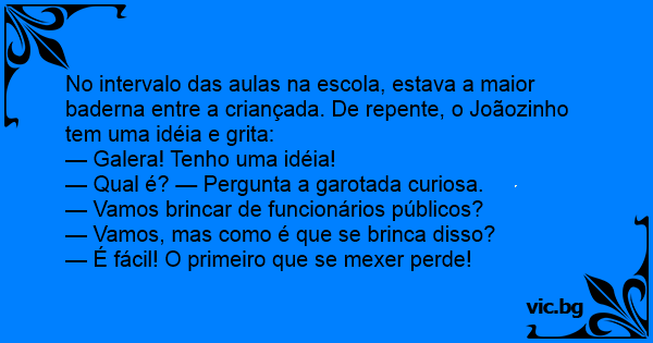 No intervalo das aulas na escola, estava a maior baderna entre a criançada. De repente, o Joãozinho tem uma idéia e grita: