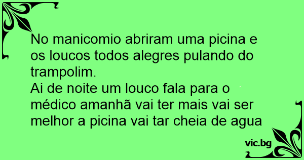 No manicomio abriram uma picina e os loucos todos alegres pulando do trampolim.