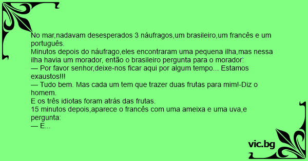 — Pois é!-Diz o francês-Eu ia colocar a uva, mas estourou e fez cosquinha,daí eu rí!Mas e você,por que riu?