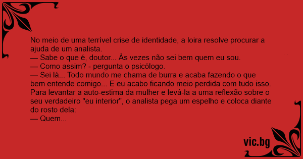 — Sabe o que é, doutor... Às vezes não sei bem quem eu sou.