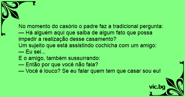 — Você é louco? Se eu falar quem tem que casar sou eu!