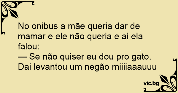 No onibus a mãe queria dar de mamar e ele não queria e ai ela falou: