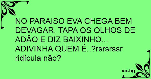NO PARAISO EVA CHEGA BEM DEVAGAR, TAPA OS OLHOS DE ADÃO E DIZ BAIXINHO... ADIVINHA QUEM É..?rsrsrssr ridícula não?