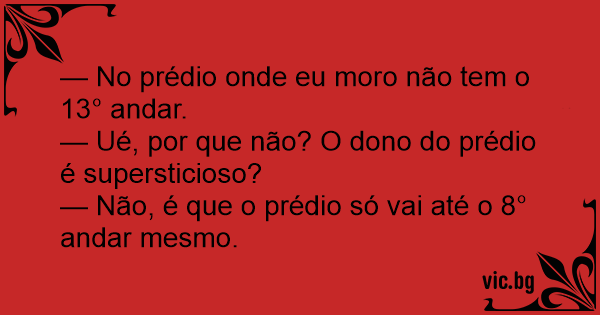 — Não, é que o prédio só vai até o 8° andar mesmo.