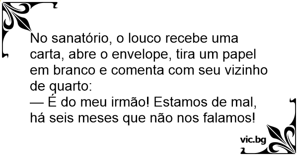 No sanatório, o louco recebe uma carta, abre o envelope, tira um papel em branco e comenta com seu vizinho de quarto: