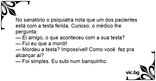 No sanatório o psiquiatra nota que um dos pacientes está com a testa ferida. Curioso, o médico lhe pergunta: