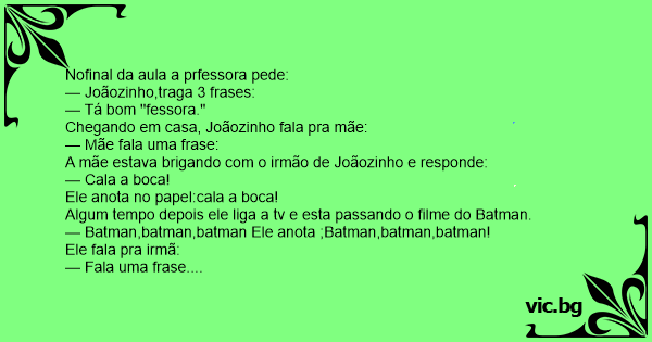 — Joãozinho, trouxe as 3 frases que eu te pedi?