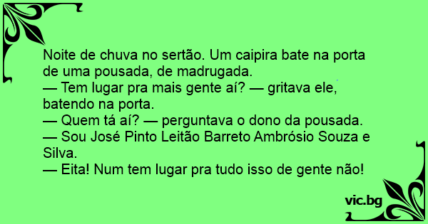 Noite de chuva no sertão. Um caipira bate na porta de uma pousada, de madrugada.