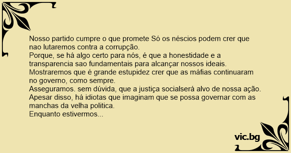 Nosso partido cumpre o que promete Só os néscios podem crer que nao lutaremos contra a corrupção.