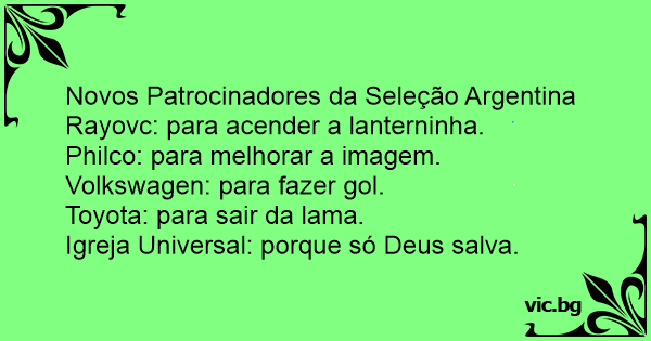 Novos Patrocinadores da Seleção Argentina Rayovc: para acender a lanterninha.